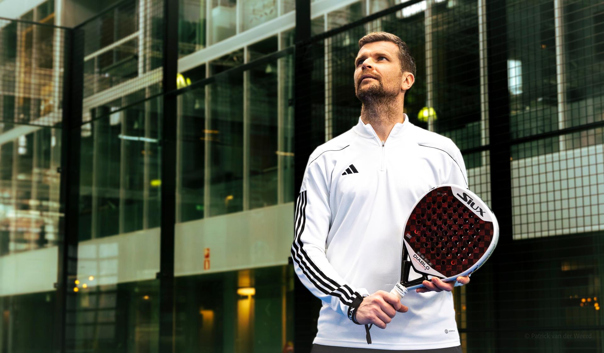 Tijdens kantooruren wordt hier niet gespeeld vanwege het geluid. Doordeweeks geef ik vanaf 17:00 uur mijn lessen en in het weekend overdag. Ik ben ook actief op andere plekken, maar deze ruimte is echt uniek. De ruimte om het veld heen zorgt ervoor dat je er goed uit kan en de hoogte is ideaal bij het lobben. Naast dat het mooi is, is het ook praktisch, goed bereikbaar en je kunt er goed parkeren. Het is echt fijn padellen in deze bijzondere ambiance.”