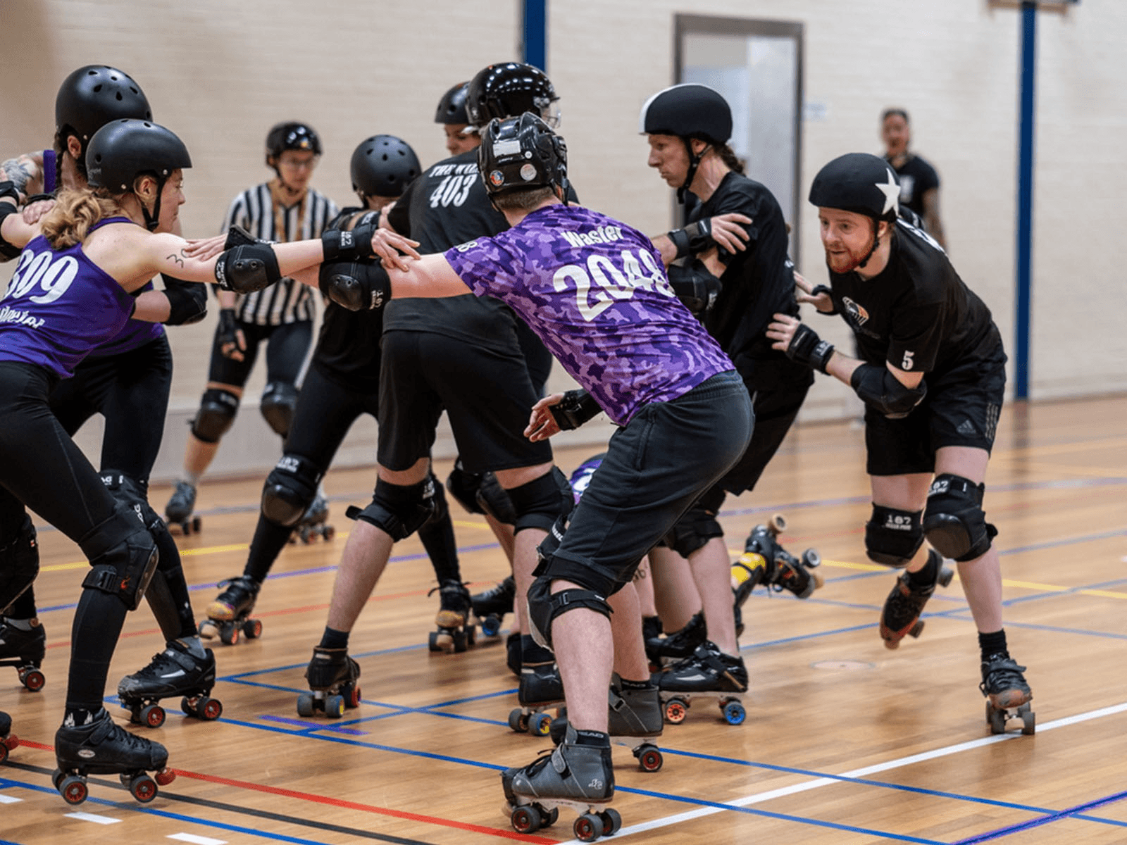 Roller Derby Groningen organiseert drie roller derby wedstrijden. Het Groningse team Thunder & Lightning heeft de teams van Breda (Pearl City Rollers) en Den Haag (The Aces of Pain) uitgenodigd om tegen elkaar te spelen. Benieuwd naar het spektakel? Kom kijken!