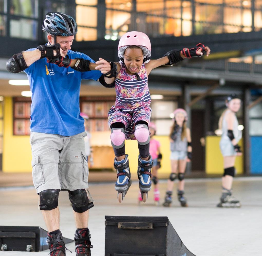 Activiteiten in het zwembad en op de ijsbaan.